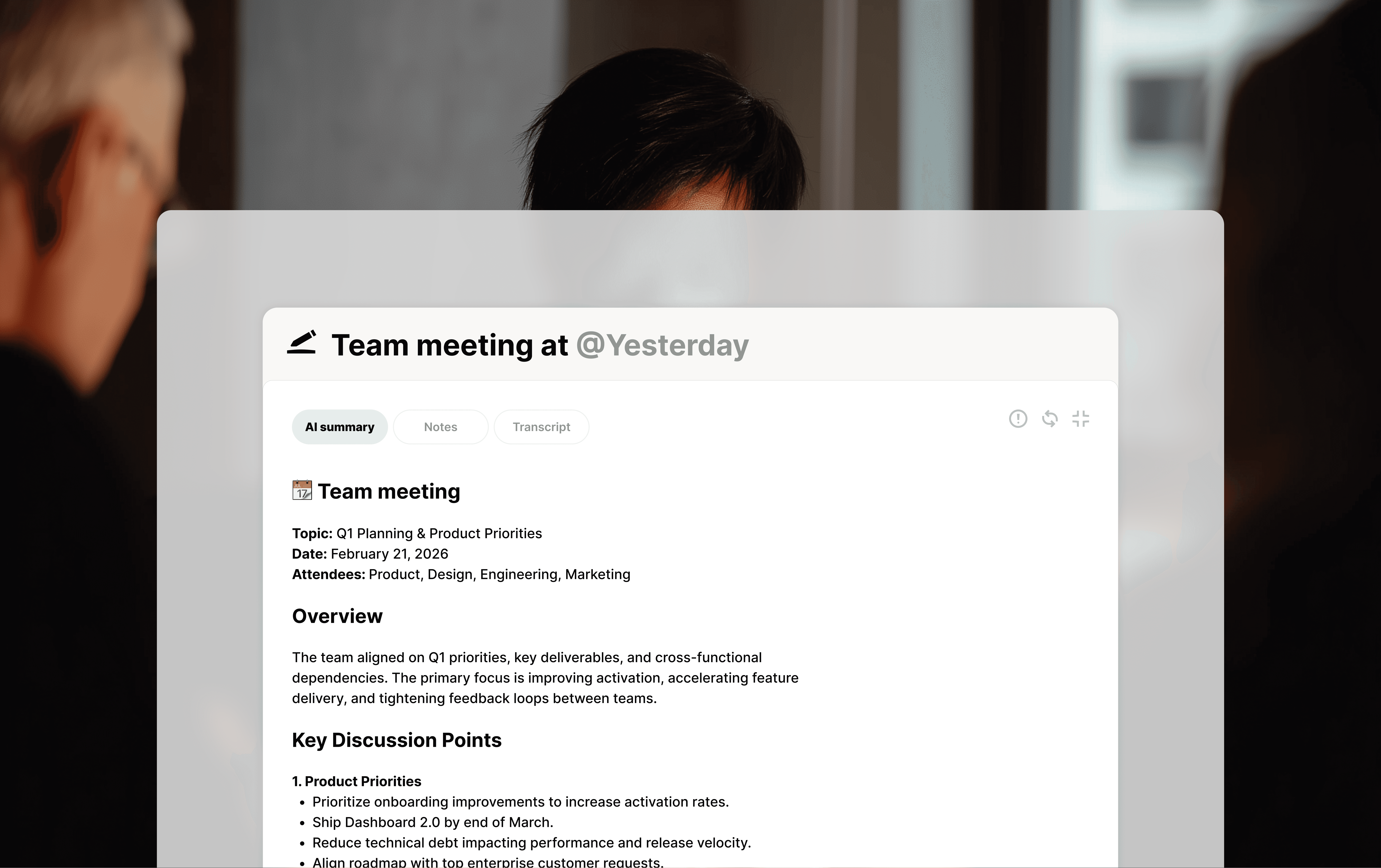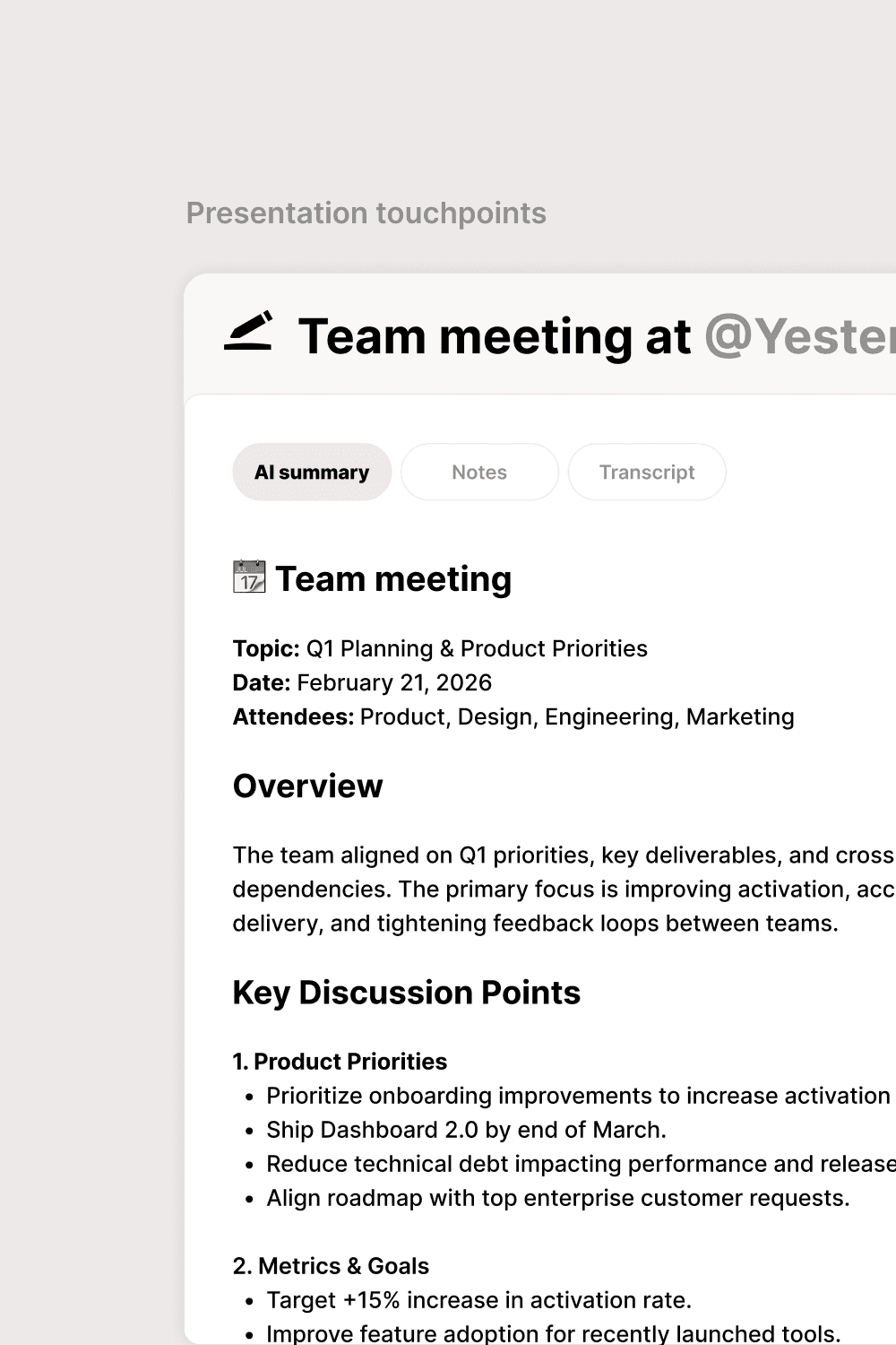 Full meeting recap with key points and decisions.